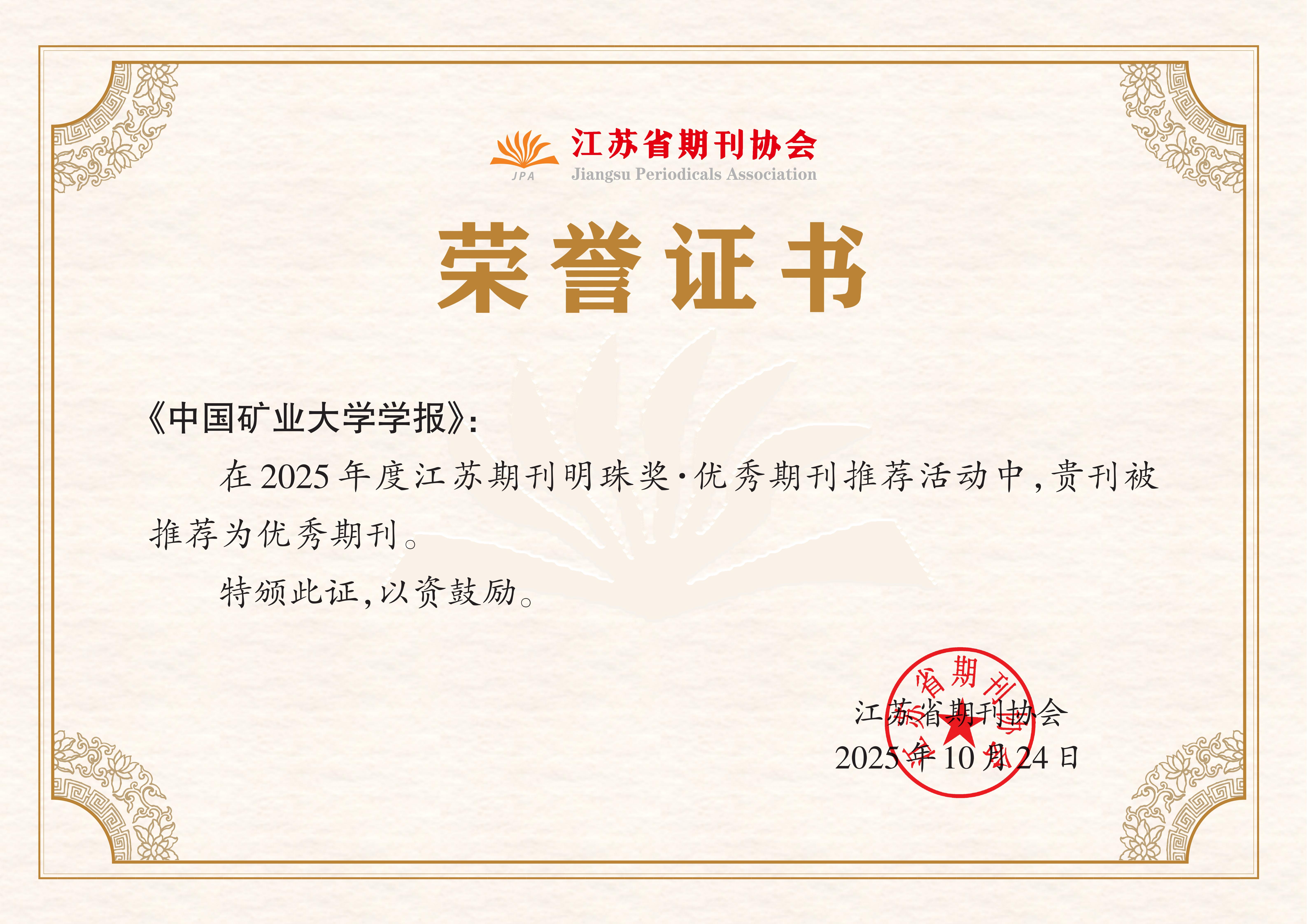 《中国矿业大学学报》荣获2025年度江苏期刊明珠奖-优秀期刊